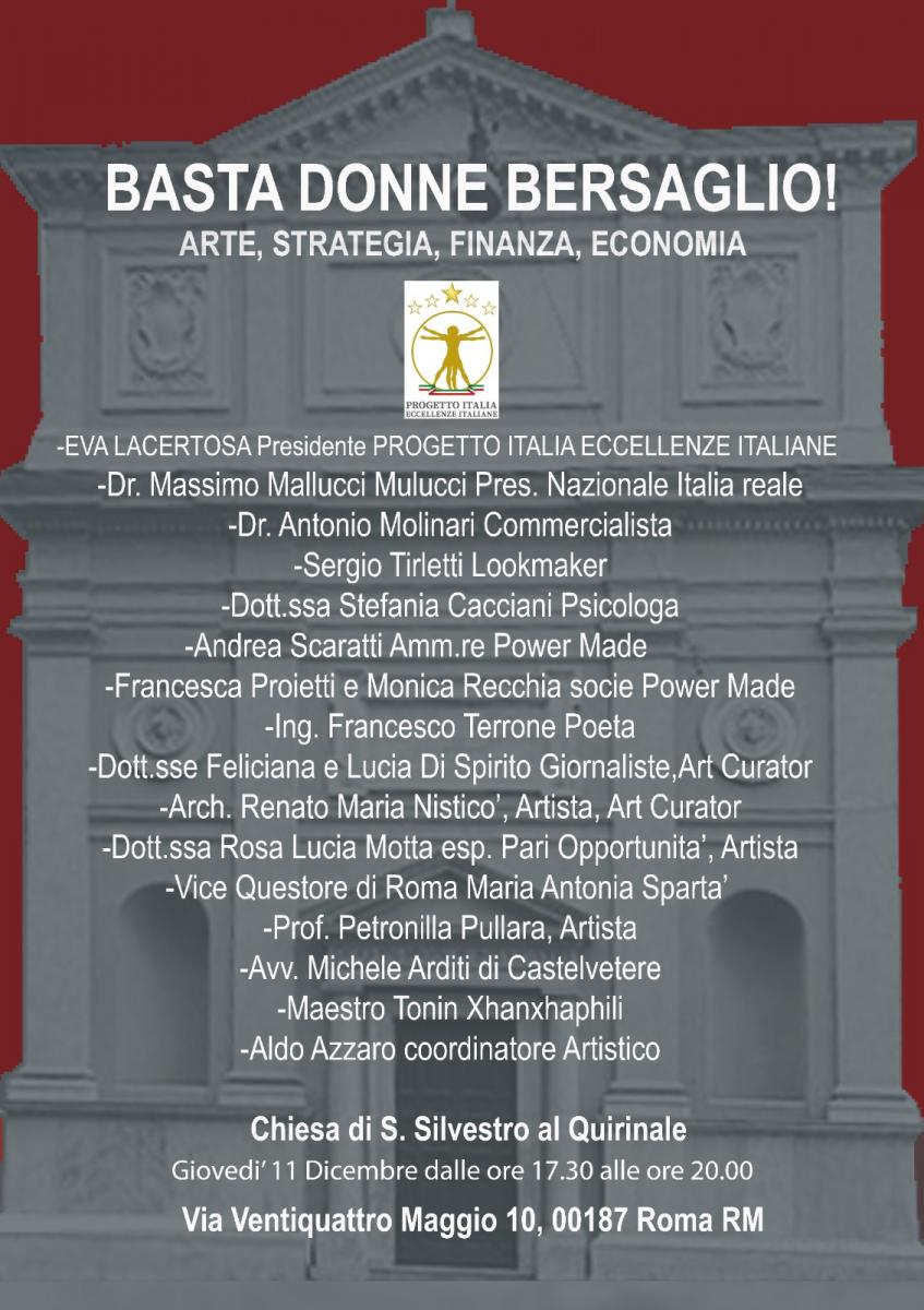 -EVA LACERTOSA Presidente PROGETTO ITALIA ECCELLENZE ITALIANE -Dr. Massimo Mallucci Mulucci Pres. Nazionale Italia reale-Dr. Antonio Molinari Commercialista-Sergio Tirletti Lookmaker-Dott.ssa Stefania Cacciani Psicologa-Andrea Scaratti Amm.re Power Made -Francesca Proietti e Monica Recchia socie Power Made-Ing. Francesco Terrone Poeta-Dott.sse Feliciana e Lucia Di Spirito Giornaliste,Art Curator-Arch. Renato Maria Nistico’, Artista, Art Curator-Dott.ssa Rosa Lucia Motta esp. Pari Opportunita’, Artista-Vice Questore di Roma Maria Antonia Sparta’ -Prof. Petronilla Pullara, Artista-Avv. Michele Arditi di Castelvetere-Maestro Tonin Xhanxhaphili-Aldo Azzaro coordinatore Artistico